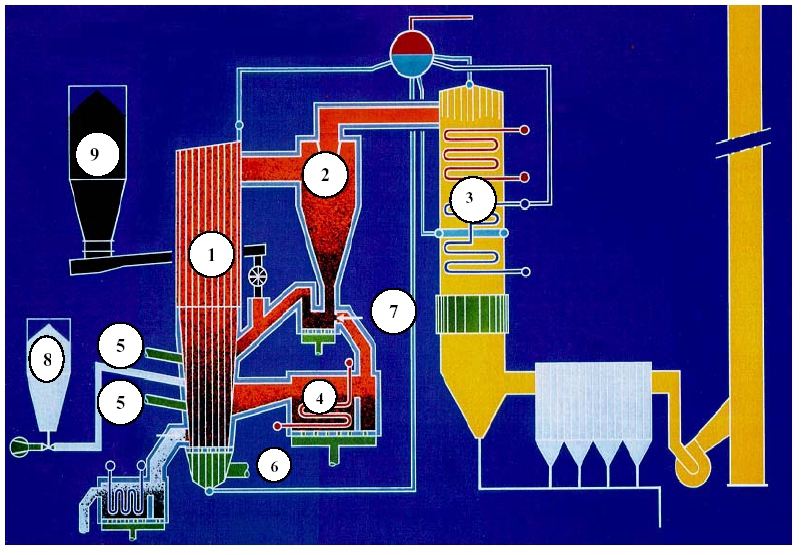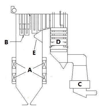 第5题:下图为300MW循环流化床锅炉结构图,炉膛是( )
