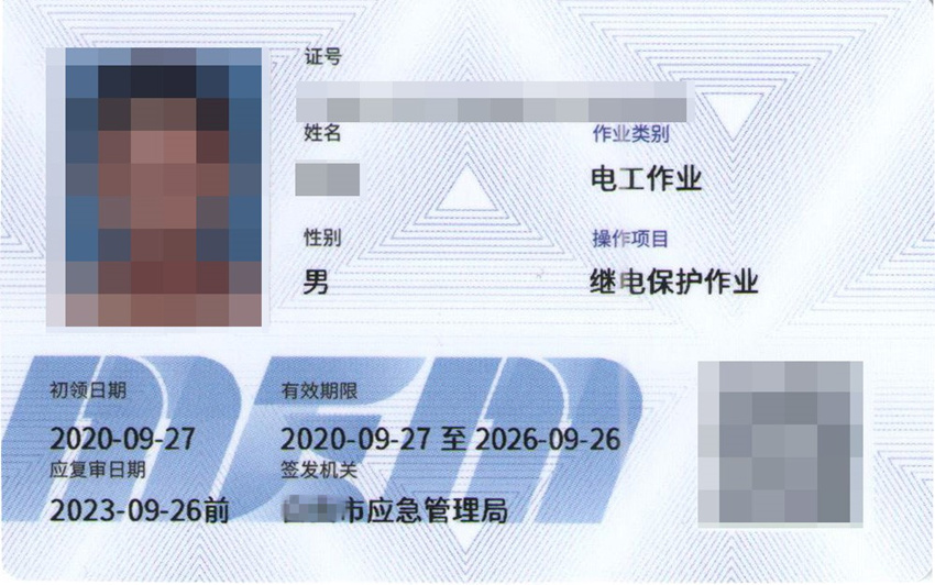 电工作业-继电保护作业证由中华人民共和国应急管理部统一式样、标准及编号,由各地应急管理局考核发证。