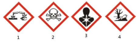 B、1-腐蚀性物质;2-剧毒物质;3-健康危害;4-水生生物毒性;