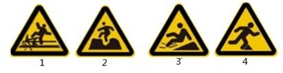 第15题:下列哪个安全标识表示“当心绊倒”。( )
