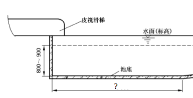 第7题:如图所示为皮筏滑梯末端及溅落区相关尺寸示意图,水深800mm~900mm的区域长度应不小于( )mm。
