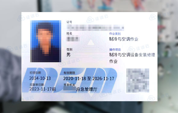 制冷与空调设备安装修理作业证由中华人民共和国应急管理部统一式样、标准及编号,由各地应急管理局考核发证。